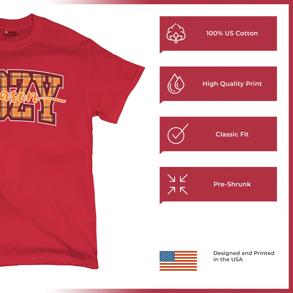 The "Cozy Season" plaid design is the perfect way to celebrate your love for all things autumn. With warm hues and a charming script, this print embodies the comfort and relaxation of the season. Whether you're spending chilly days at home or embracing the outdoor fall beauty, this design fits effortlessly into your wardrobe. It's an ideal gift for friends and family who appreciate the simple joys of autumn, including warm drinks, cozy sweaters, and the crispness of fall air.