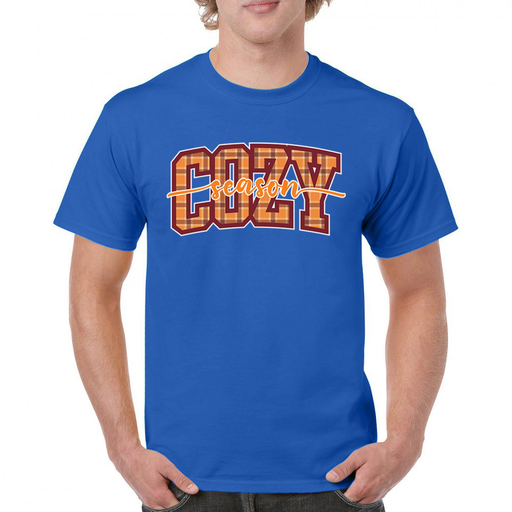 Celebrate fall with this "Cozy Season" plaid design. Perfect for autumn lovers who cherish cozy days, warm drinks, and the beauty of the season.