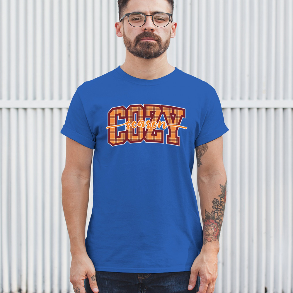 The "Cozy Season" plaid design is the perfect way to celebrate your love for all things autumn. With warm hues and a charming script, this print embodies the comfort and relaxation of the season. Whether you're spending chilly days at home or embracing the outdoor fall beauty, this design fits effortlessly into your wardrobe. It's an ideal gift for friends and family who appreciate the simple joys of autumn, including warm drinks, cozy sweaters, and the crispness of fall air.