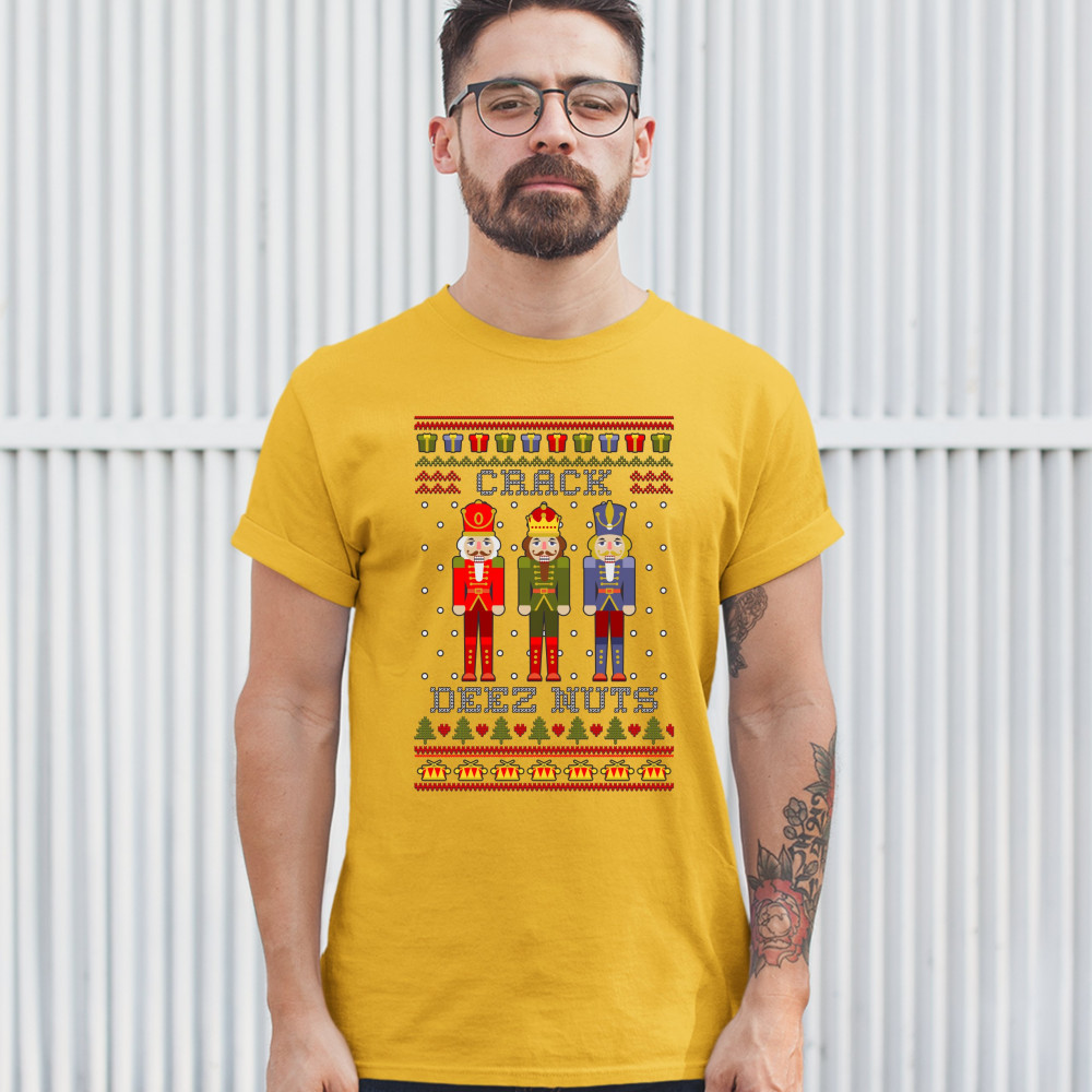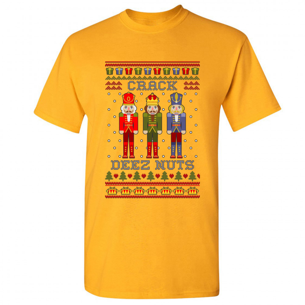 CRACK DEEZ NUTS t-shirt funny christmas nutcracker ugly sweater men's tee yellow