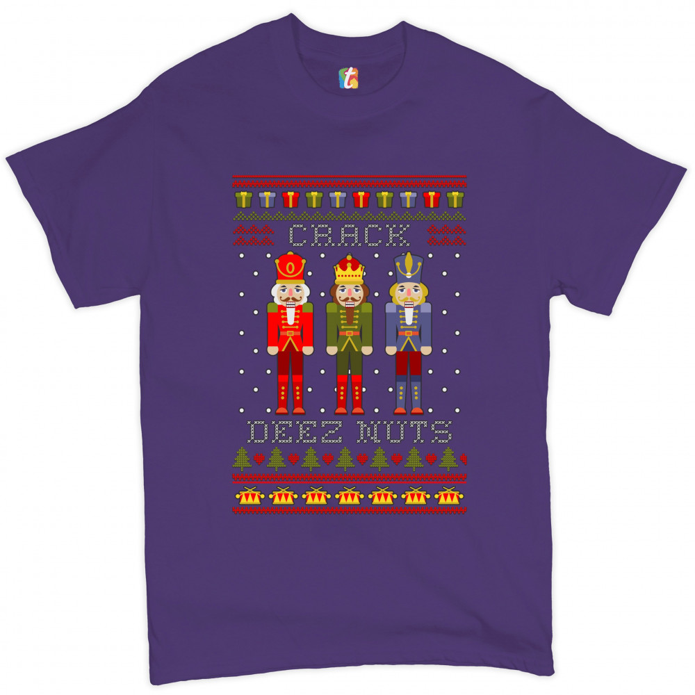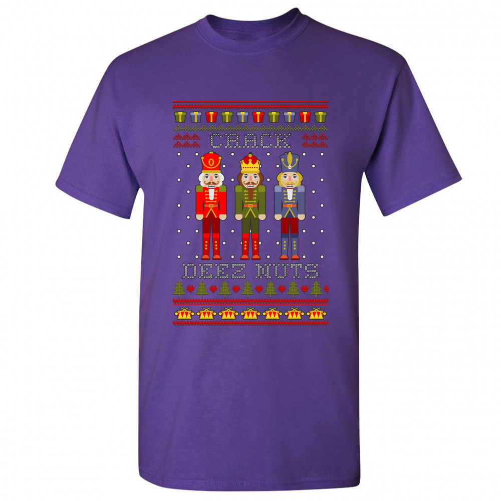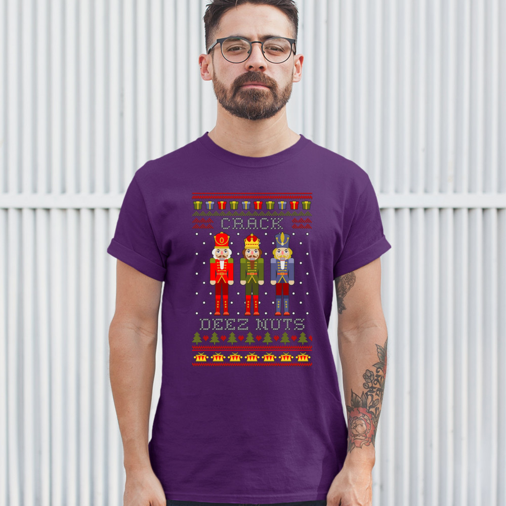 CRACK DEEZ NUTS t-shirt funny christmas nutcracker ugly sweater men's tee purple
