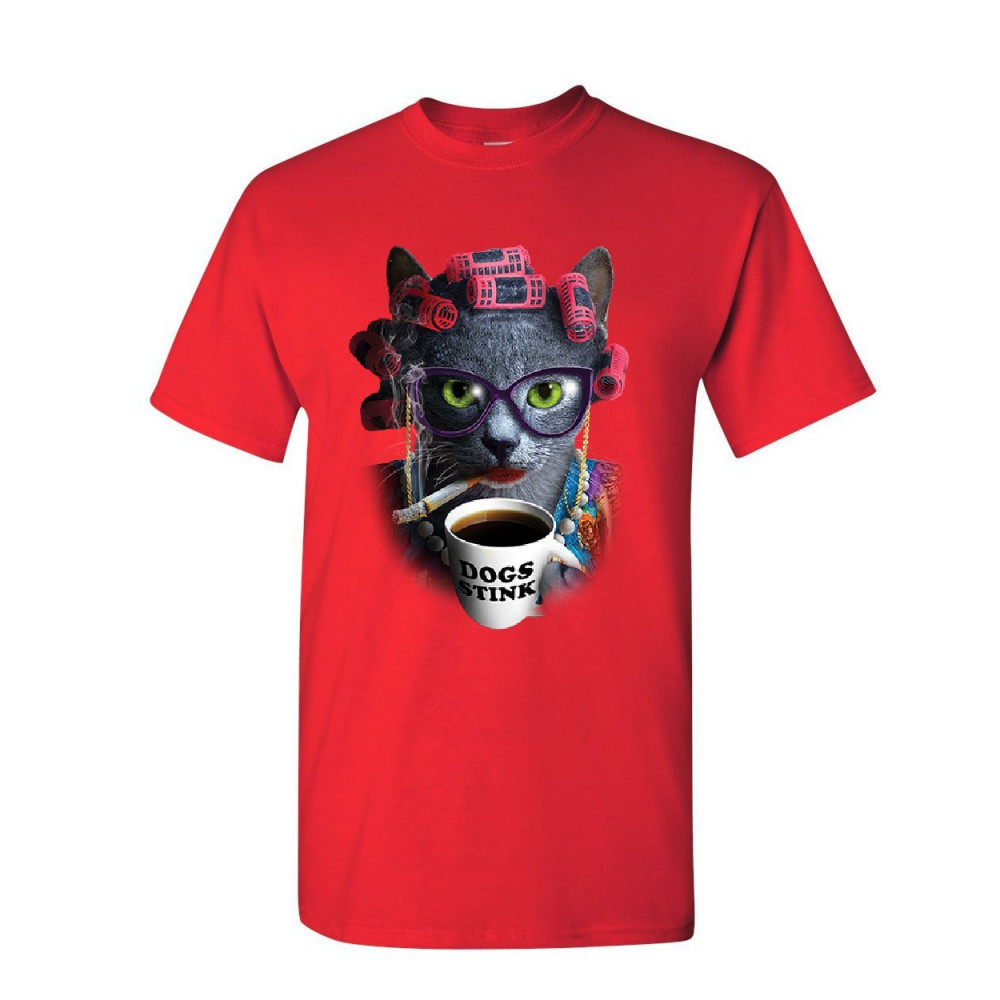 CRAZY OLD CAT LADY t-shirt dogs stink funny kitten cat lover pet mens tee shirt red