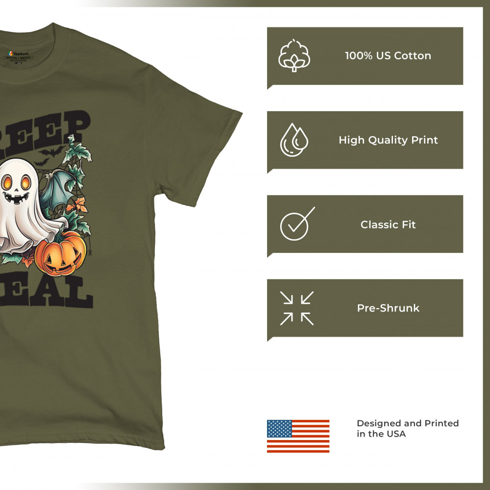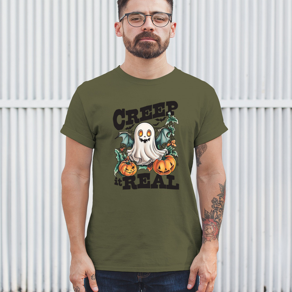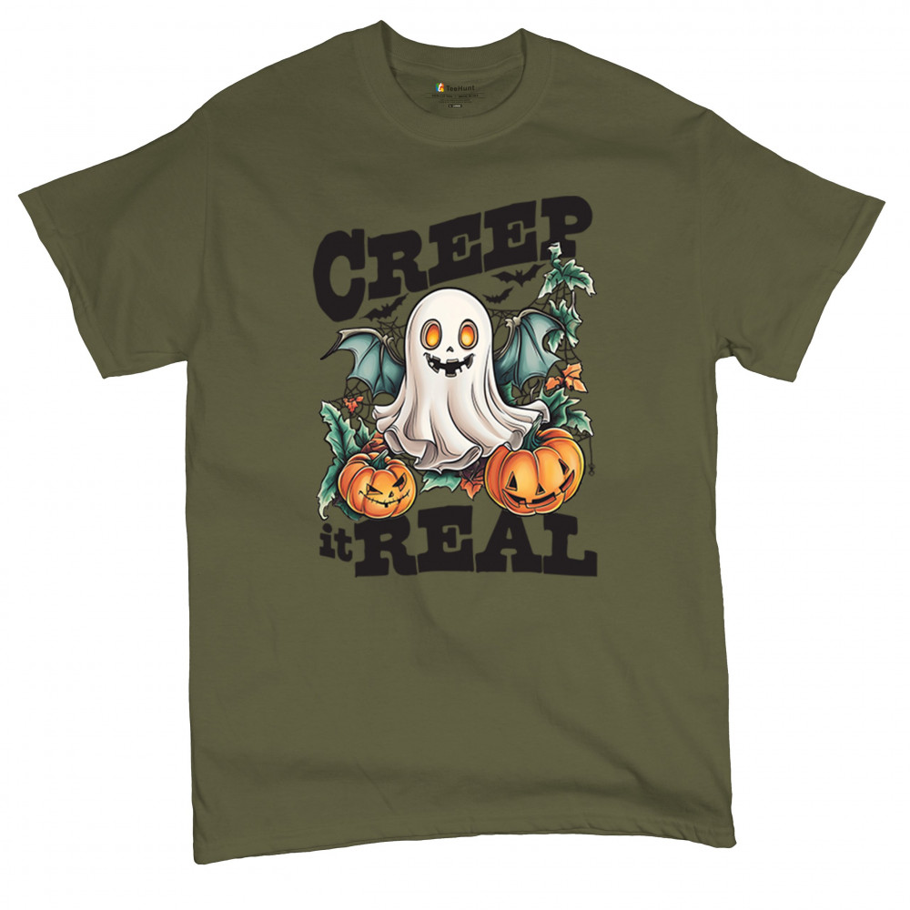 Celebrate Halloween with this playful "Creep It Real" ghost design, perfect for fall activities, pumpkin patches, and spooky parties!