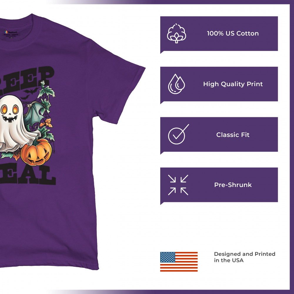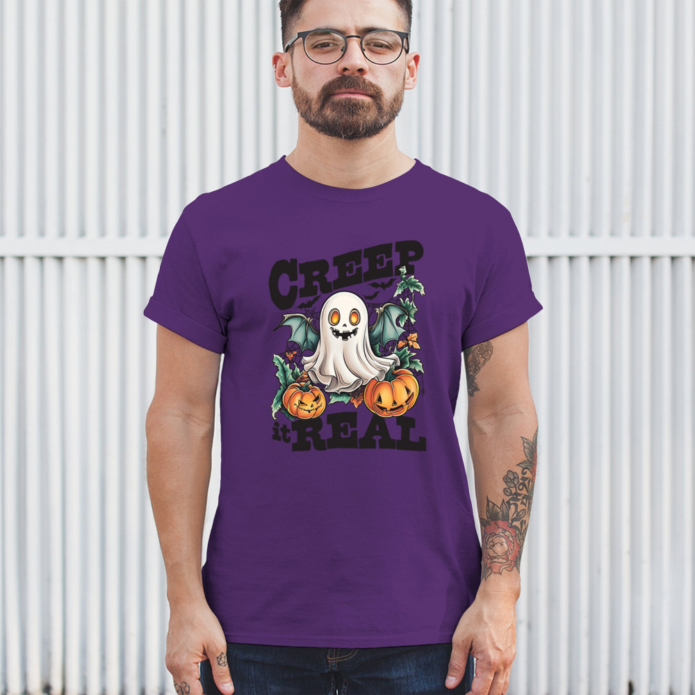 Celebrate Halloween with this playful "Creep It Real" ghost design, perfect for fall activities, pumpkin patches, and spooky parties!