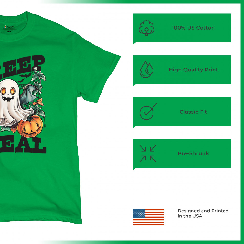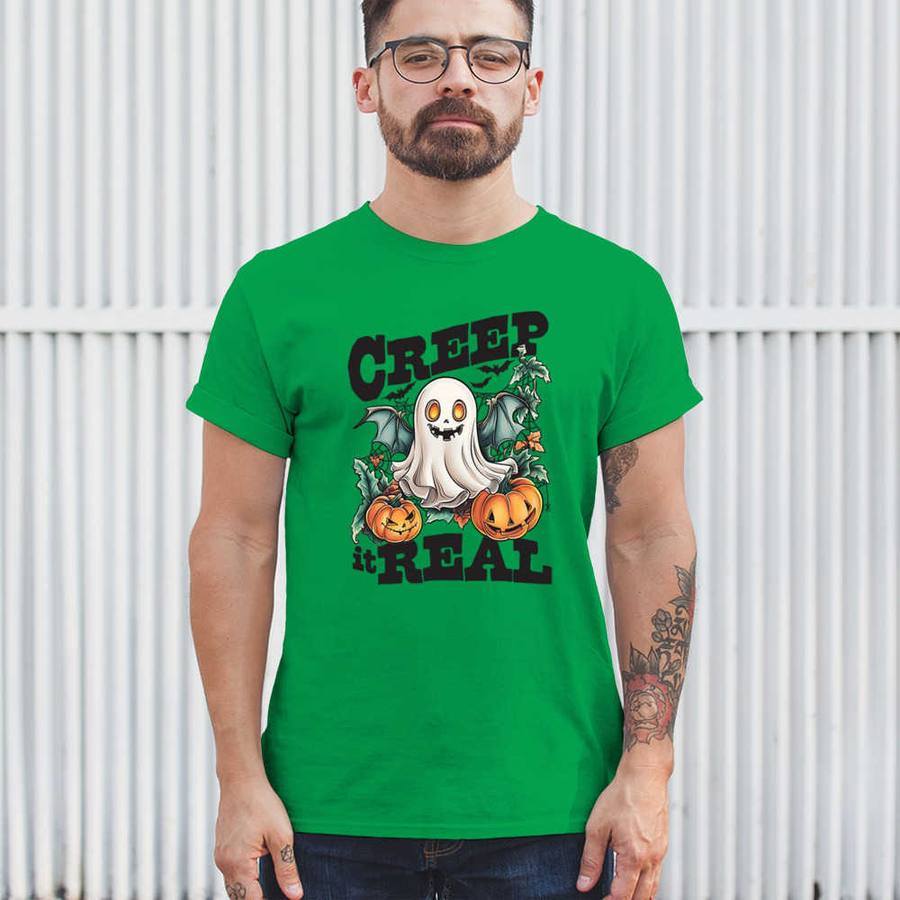 Celebrate Halloween with this playful "Creep It Real" ghost design, perfect for fall activities, pumpkin patches, and spooky parties!