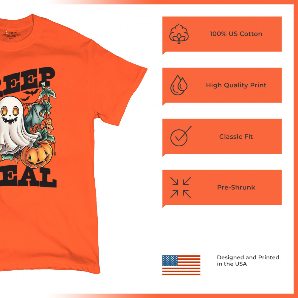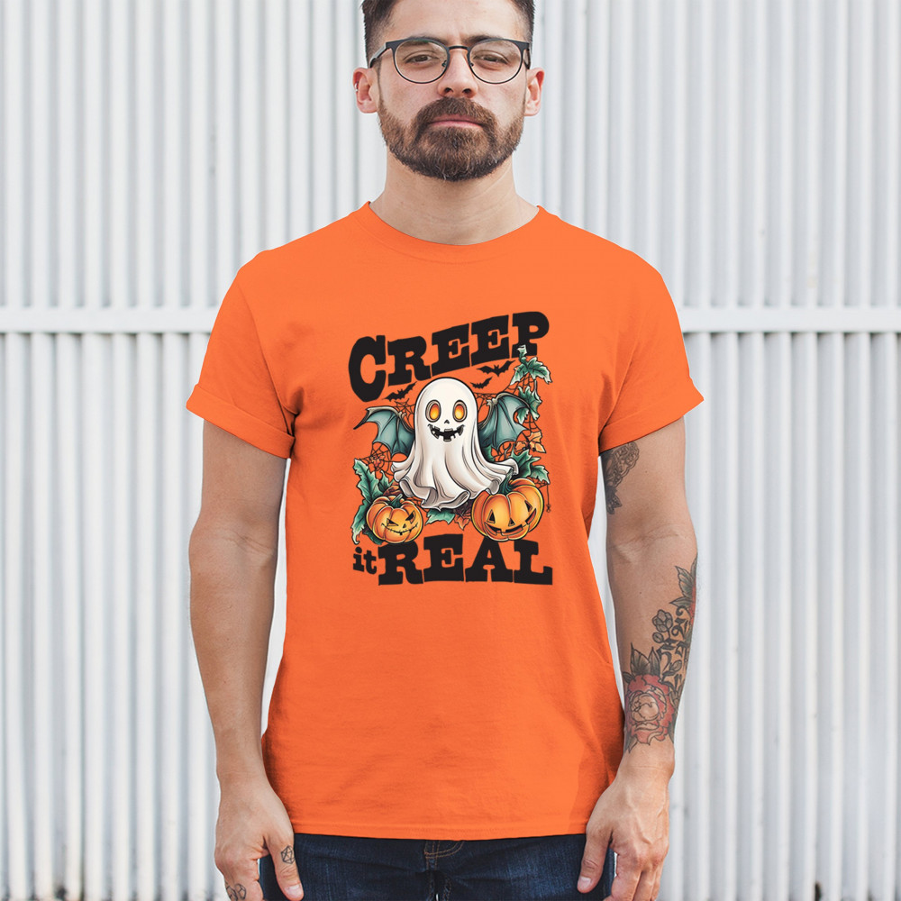 Celebrate Halloween with this playful "Creep It Real" ghost design, perfect for fall activities, pumpkin patches, and spooky parties!