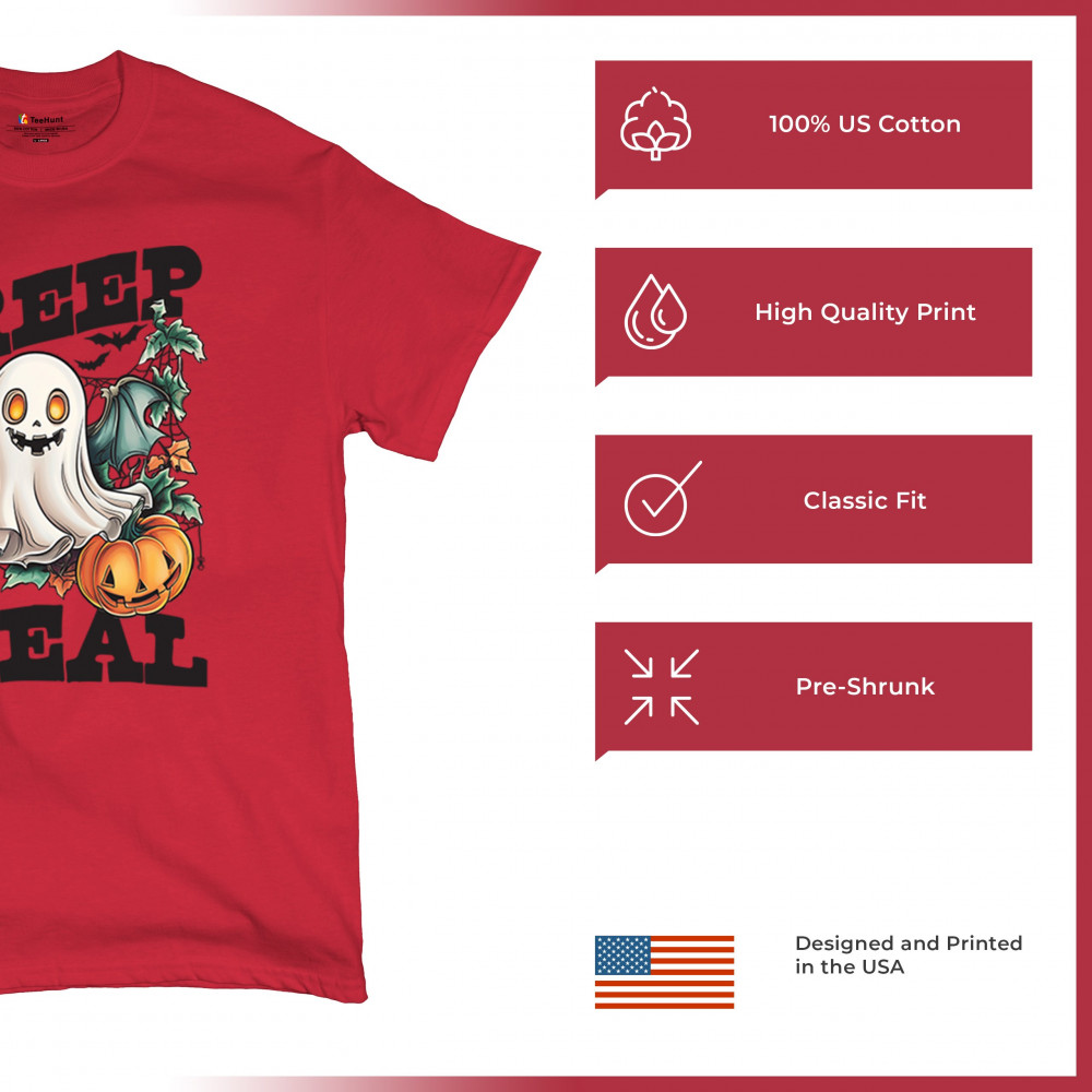 Celebrate Halloween with this playful "Creep It Real" ghost design, perfect for fall activities, pumpkin patches, and spooky parties!