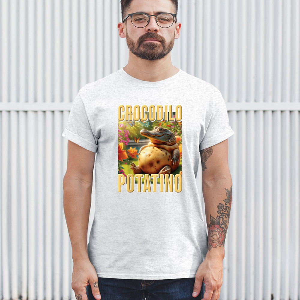 Crocodilo Potatino lives rent-free in a butterfly field of cursed bliss. This surreal croc-potato combo blends weirdcore aesthetic, viral Gen Z humor, ironic internet fashion, and TikTok meme absurdity. Built for lovers of odd animal mashups, cursed-core comedy, and viral brainrot streetwear.