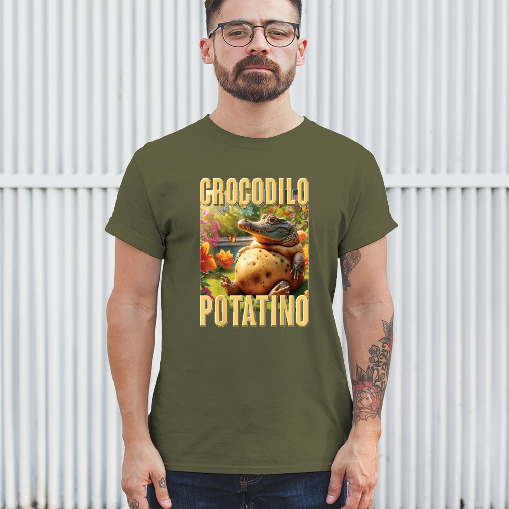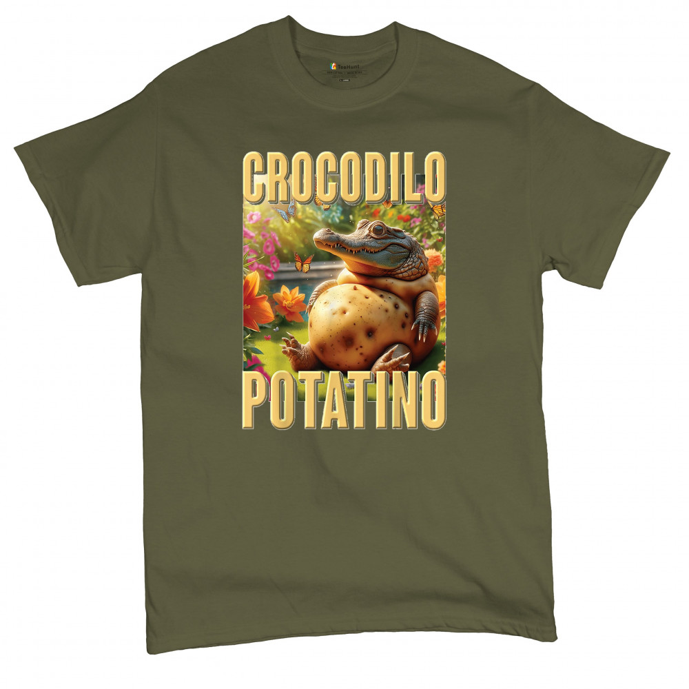 Crocodilo Potatino lives rent-free in a butterfly field of cursed bliss. This surreal croc-potato combo blends weirdcore aesthetic, viral Gen Z humor, ironic internet fashion, and TikTok meme absurdity. Built for lovers of odd animal mashups, cursed-core comedy, and viral brainrot streetwear.