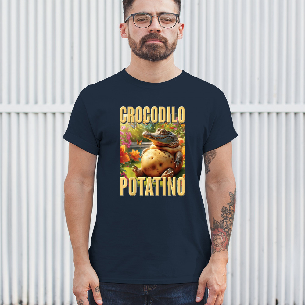 Crocodilo Potatino lives rent-free in a butterfly field of cursed bliss. This surreal croc-potato combo blends weirdcore aesthetic, viral Gen Z humor, ironic internet fashion, and TikTok meme absurdity. Built for lovers of odd animal mashups, cursed-core comedy, and viral brainrot streetwear.