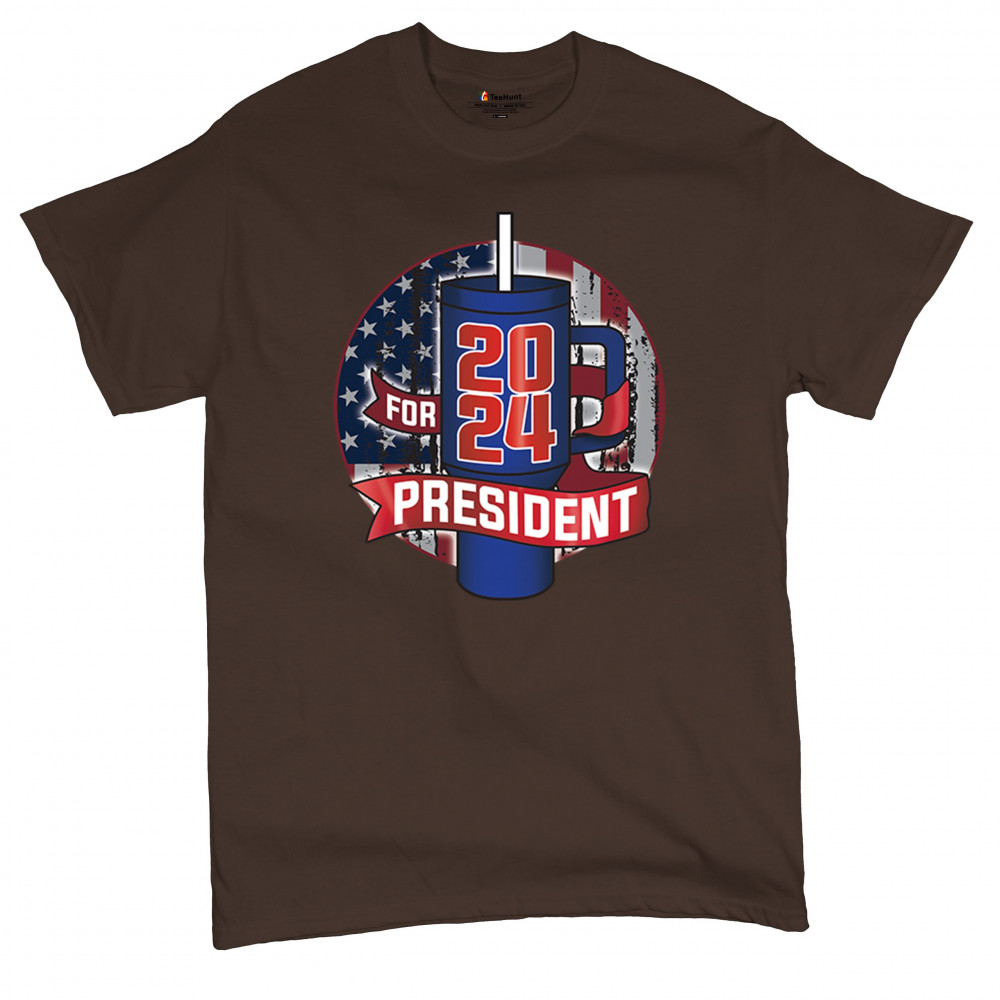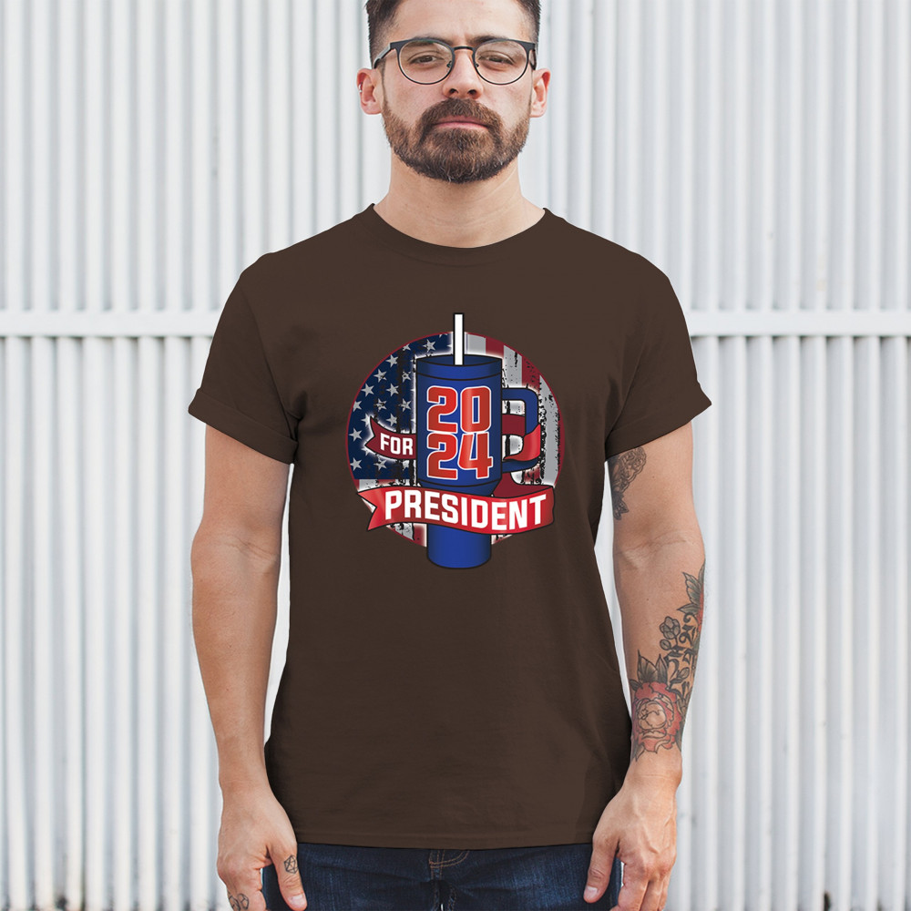 Celebrate the 2024 election season with a touch of humor with this clever design that parodies the popular water bottle craze. Perfect for those who enjoy political satire and want to make a statement, this design is ideal for casual wear, political rallies, and social gatherings. Show off your witty side with this playful and eye-catching graphic, and get ready to spark conversations and laughter wherever you go.