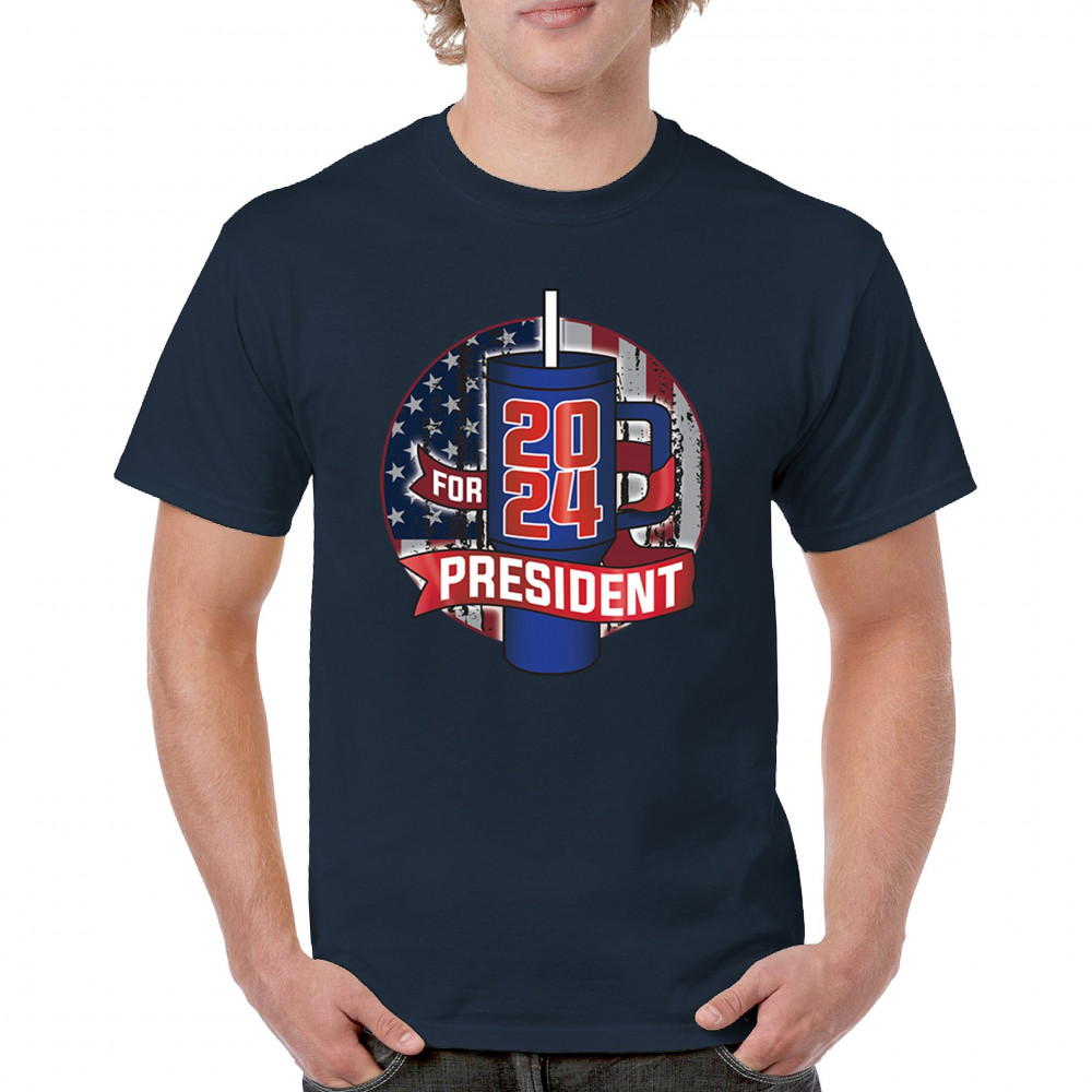 Celebrate the 2024 election season with a touch of humor with this clever design that parodies the popular water bottle craze. Perfect for those who enjoy political satire and want to make a statement, this design is ideal for casual wear, political rallies, and social gatherings. Show off your witty side with this playful and eye-catching graphic, and get ready to spark conversations and laughter wherever you go.
