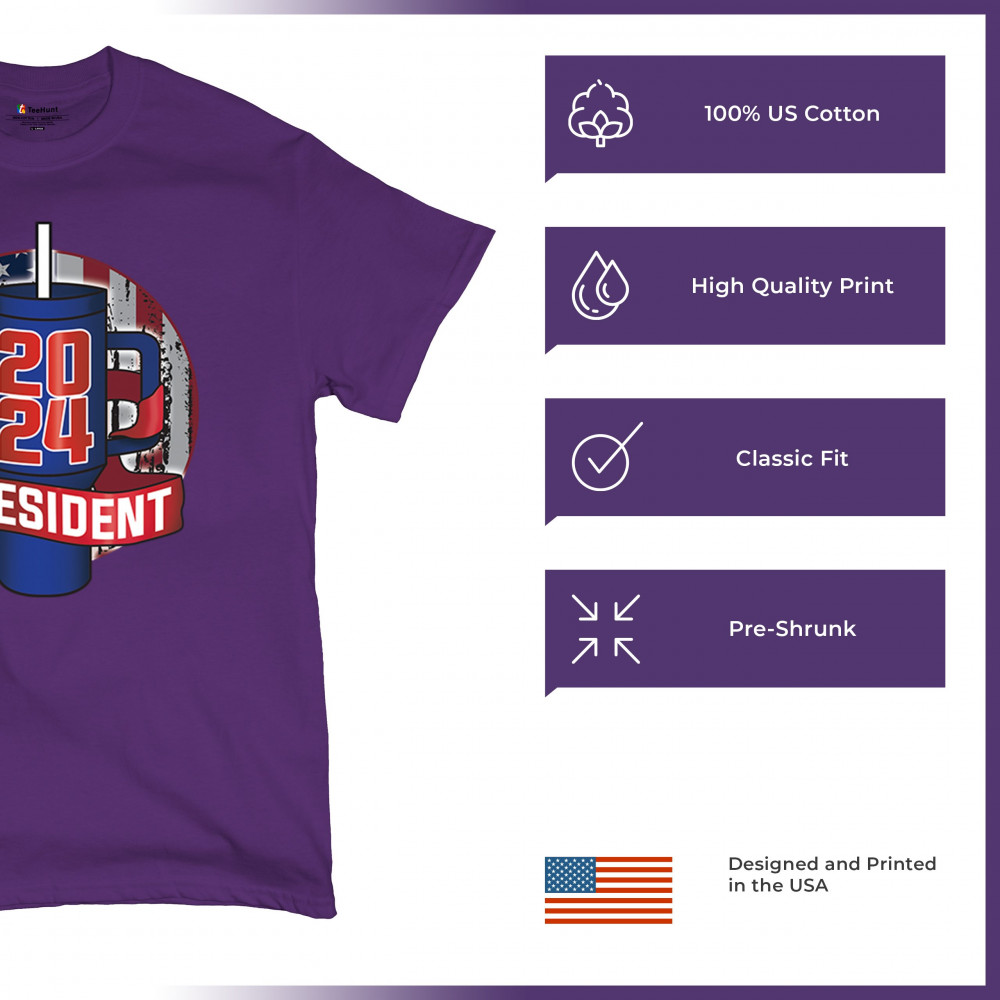 Celebrate the 2024 election season with a touch of humor with this clever design that parodies the popular water bottle craze. Perfect for those who enjoy political satire and want to make a statement, this design is ideal for casual wear, political rallies, and social gatherings. Show off your witty side with this playful and eye-catching graphic, and get ready to spark conversations and laughter wherever you go.