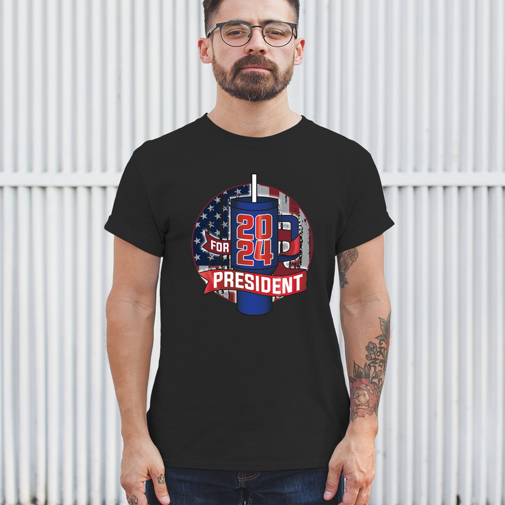 CUP FOR PRESIDENT 2024 t-shirt fun water bottle vote tumbler parody men's tee black