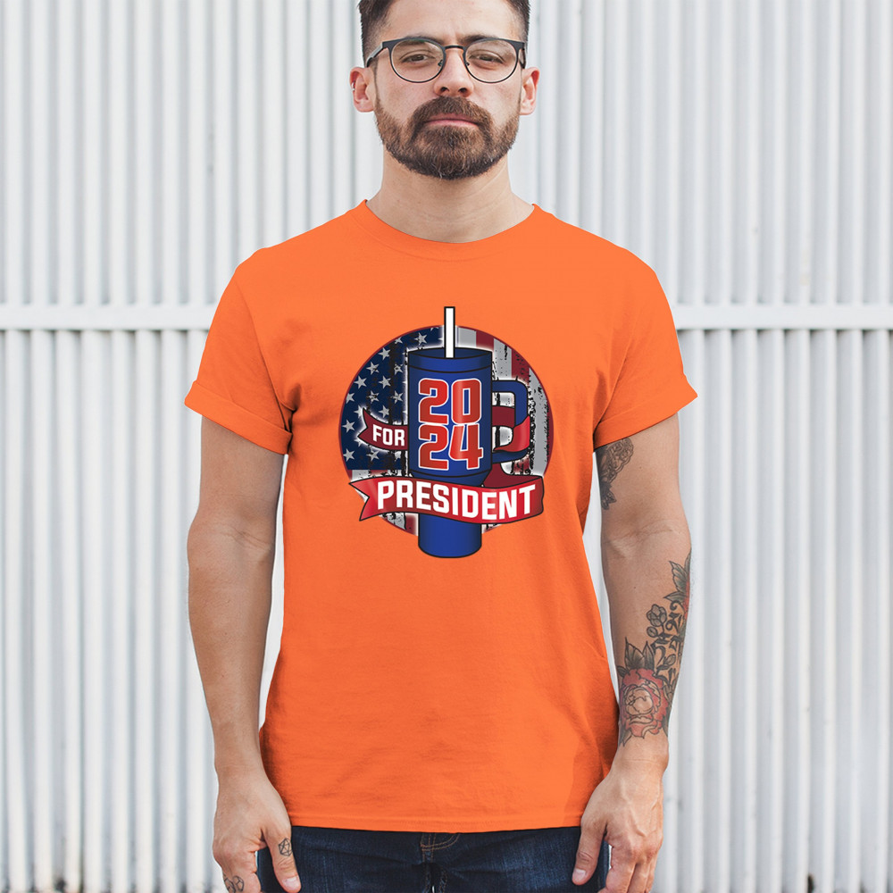 Celebrate the 2024 election season with a touch of humor with this clever design that parodies the popular water bottle craze. Perfect for those who enjoy political satire and want to make a statement, this design is ideal for casual wear, political rallies, and social gatherings. Show off your witty side with this playful and eye-catching graphic, and get ready to spark conversations and laughter wherever you go.