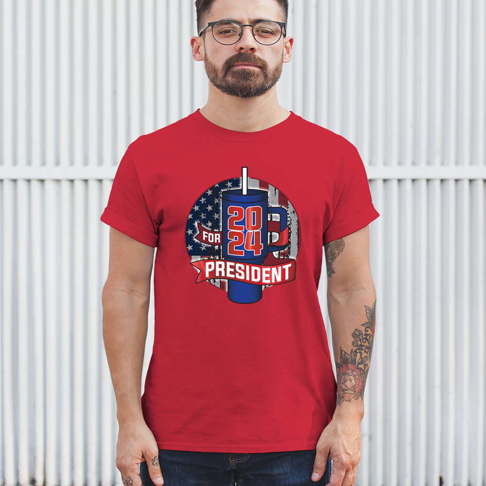 Celebrate the 2024 election season with a touch of humor with this clever design that parodies the popular water bottle craze. Perfect for those who enjoy political satire and want to make a statement, this design is ideal for casual wear, political rallies, and social gatherings. Show off your witty side with this playful and eye-catching graphic, and get ready to spark conversations and laughter wherever you go.