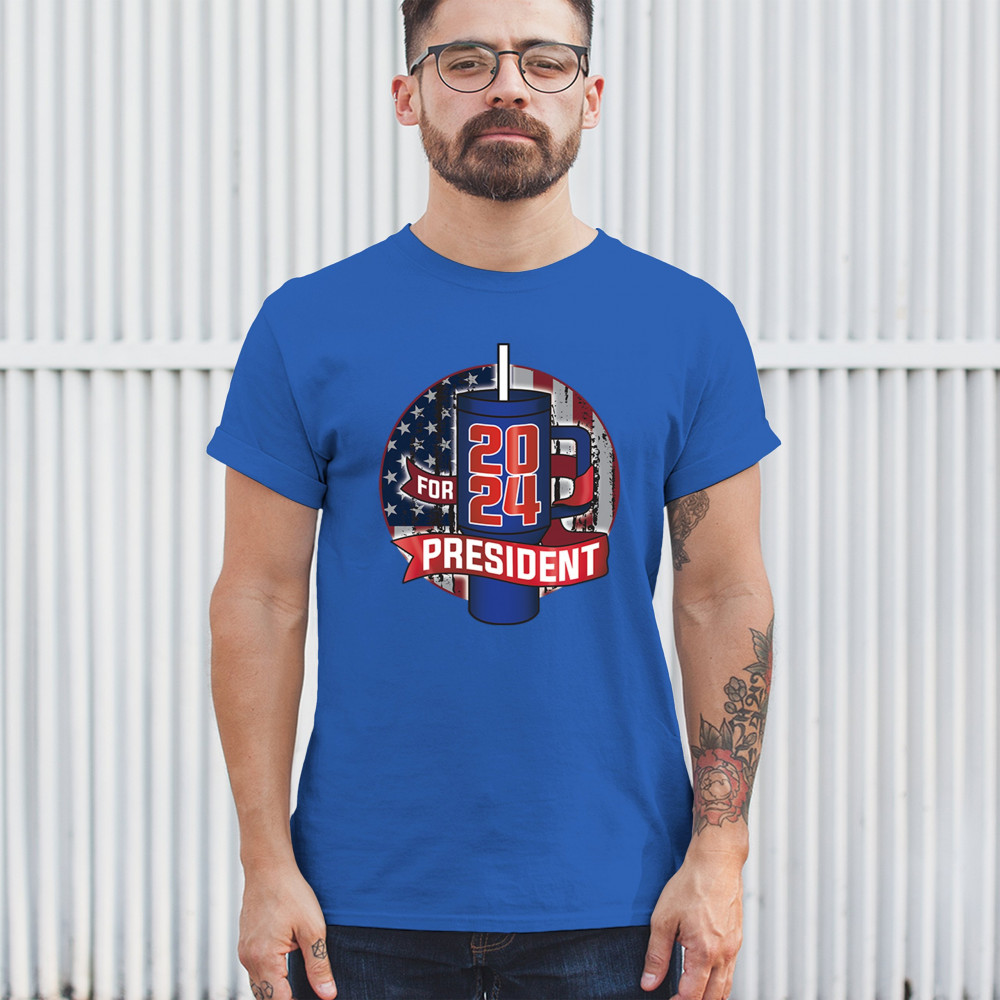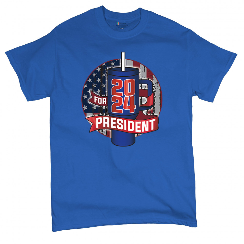 Celebrate the 2024 election season with a touch of humor with this clever design that parodies the popular water bottle craze. Perfect for those who enjoy political satire and want to make a statement, this design is ideal for casual wear, political rallies, and social gatherings. Show off your witty side with this playful and eye-catching graphic, and get ready to spark conversations and laughter wherever you go.