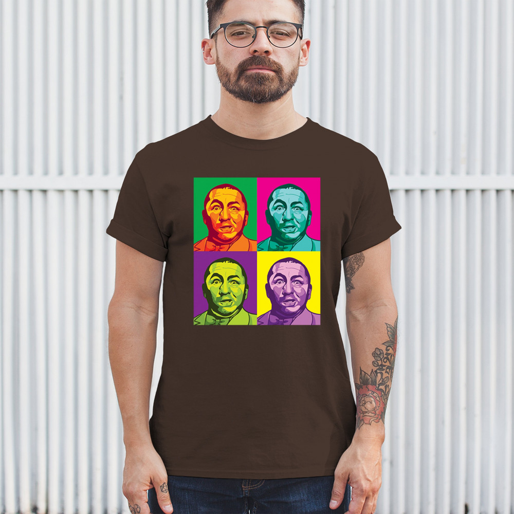 Introducing our dazzling pop art collection, headlined by the inimitable Curly of the Three Stooges! With a quartet of vivid hues, this T-shirt is a contemporary twist on classic humor. It's a standout piece for any fan's collection, capturing the timeless expression of Curly in a modern art style that's sure to turn heads and spark smiles.