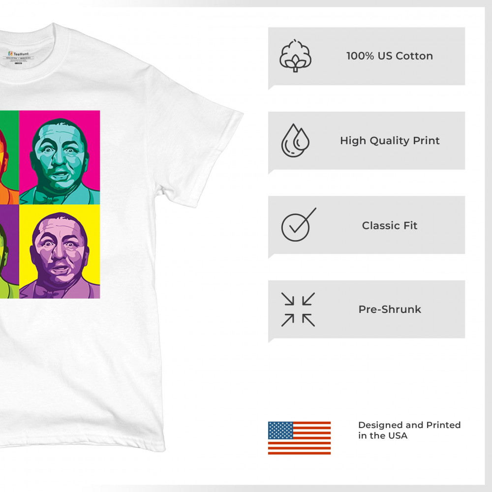 Experience Curly in full color with our pop art Three Stooges T-shirt—a fresh take on a classic that's as unique and spirited as the man himself!