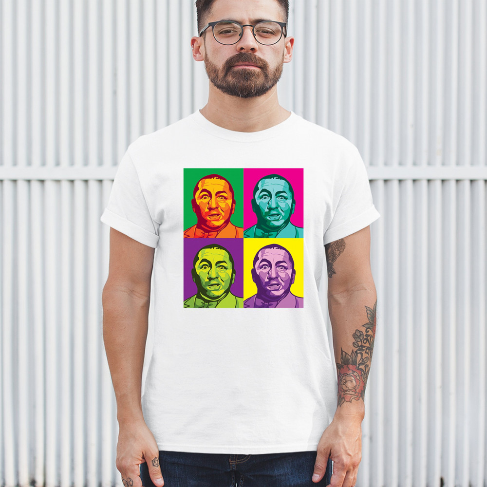 Introducing our dazzling pop art collection, headlined by the inimitable Curly of the Three Stooges! With a quartet of vivid hues, this T-shirt is a contemporary twist on classic humor. It's a standout piece for any fan's collection, capturing the timeless expression of Curly in a modern art style that's sure to turn heads and spark smiles.