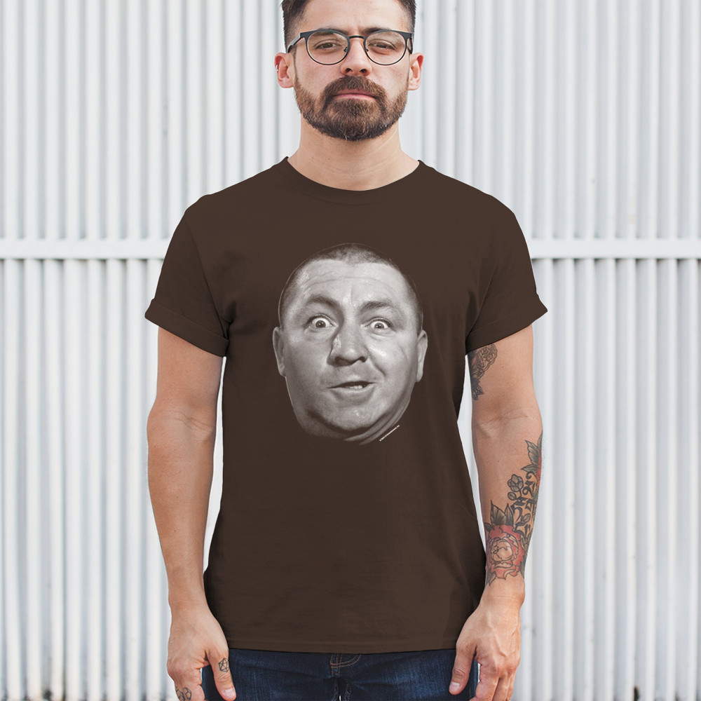Embrace Curly’s timeless comedy with a design that spotlights the lovable dumbfoundedness he brought to the Three Stooges.