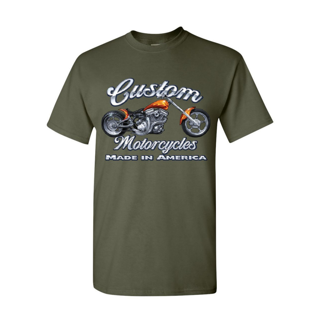 CUSTOM MOTORCYCLES t-shirt biker chopper american tradition usa mens tee shirt military green