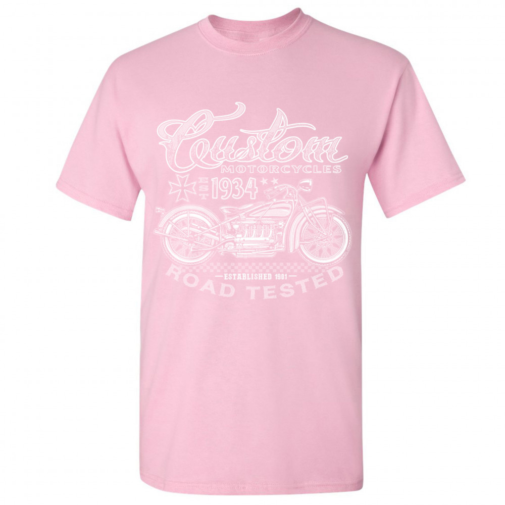 CUSTOM MOTORCYCLES ROAD TESTED t-shirt bobber biker gang mc men's tee light pink