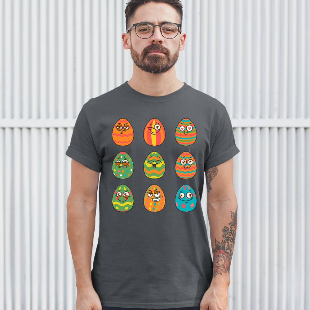 CUTE EASTER EGGS t-shirt jesus has risen happy easter egg hunt men's tee charcoal
