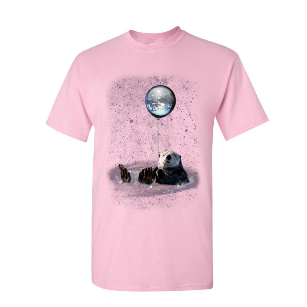OTTER SPACE cute otter bathing in space t-shirt funny universe galaxy earth mens tee shirt light pink
