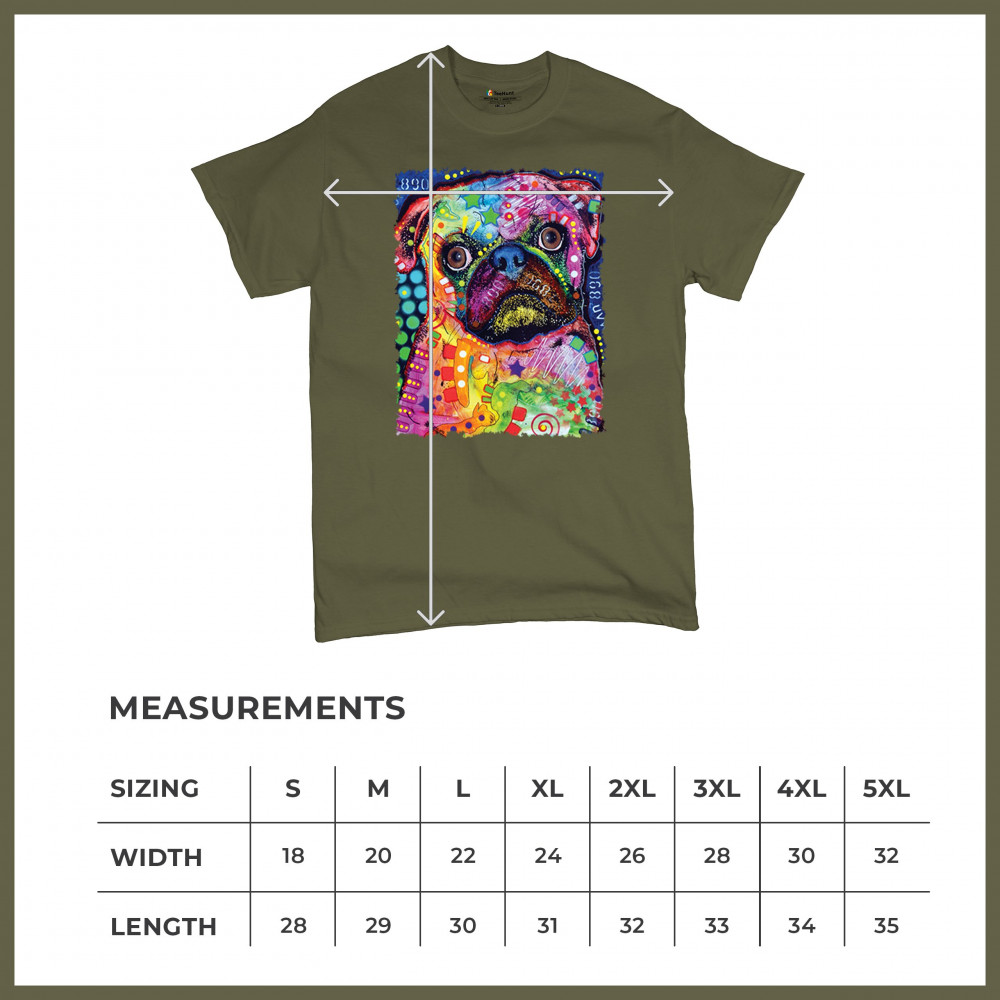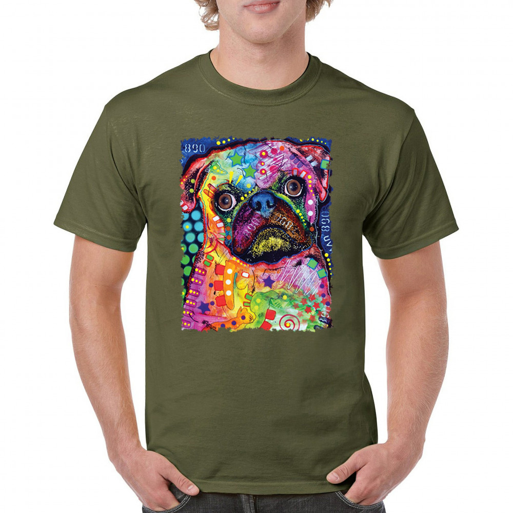 CUTE PUG PUPPY t-shirt dean russo colorful neon mosaic dog art men's tee military green