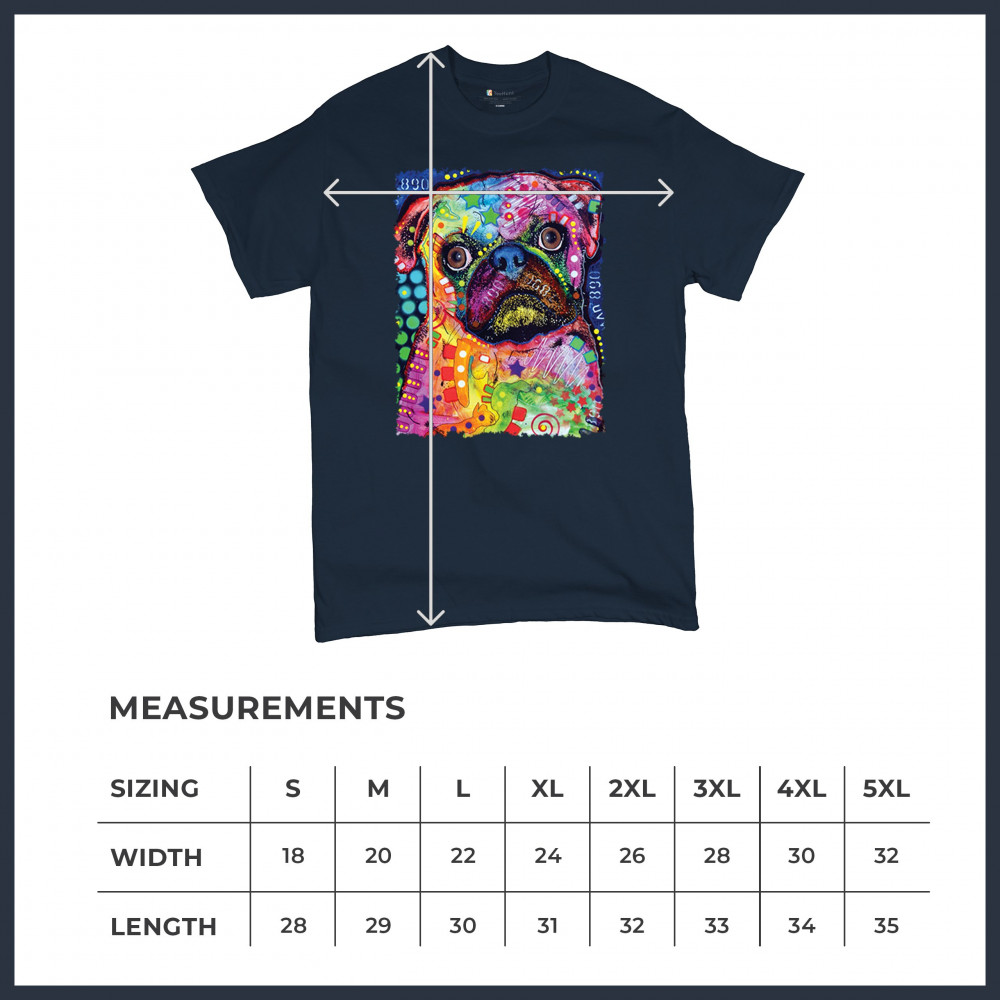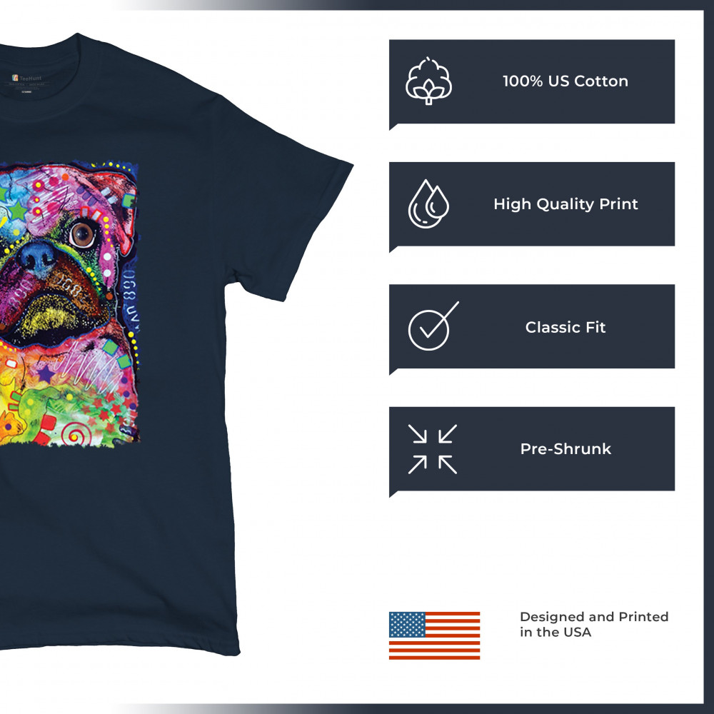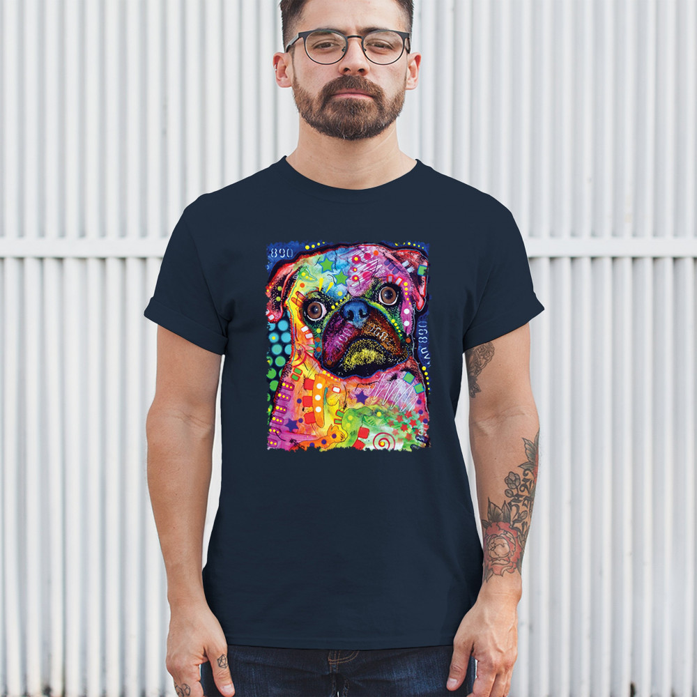 CUTE PUG PUPPY t-shirt dean russo colorful neon mosaic dog art men's tee navy blue