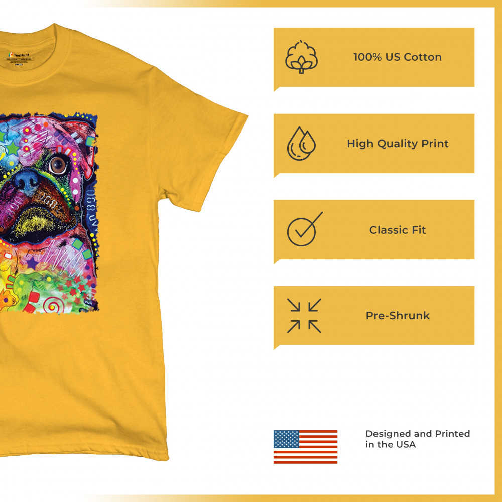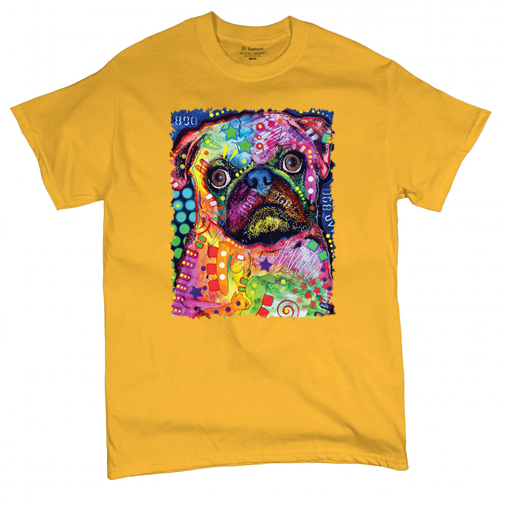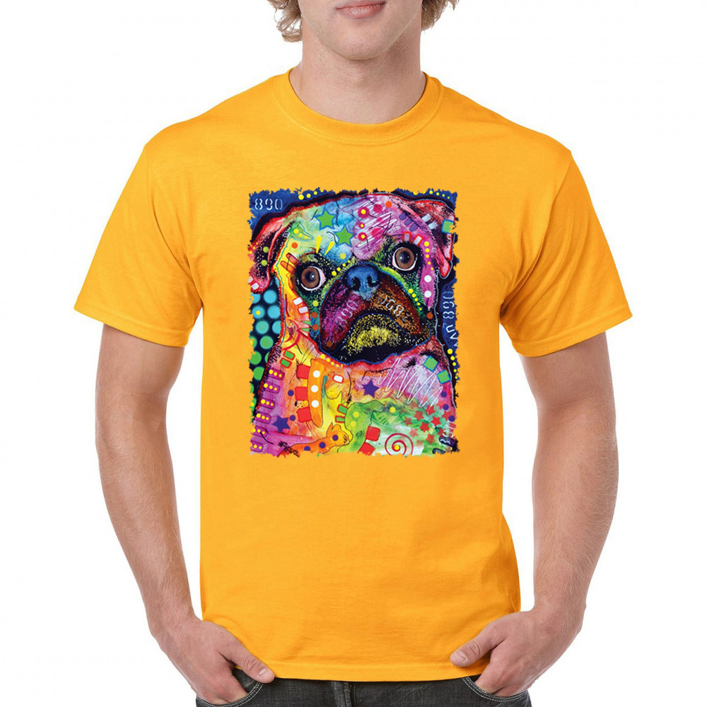 CUTE PUG PUPPY t-shirt dean russo colorful neon mosaic dog art men's tee yellow