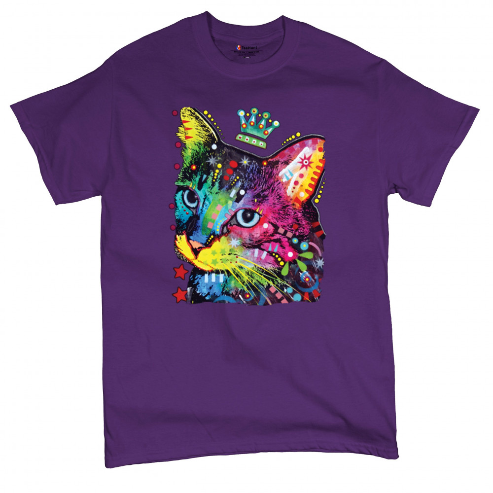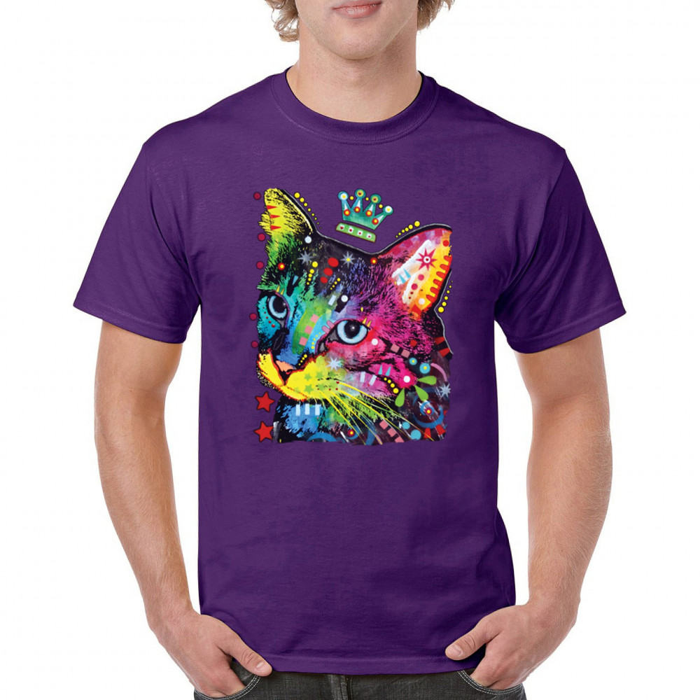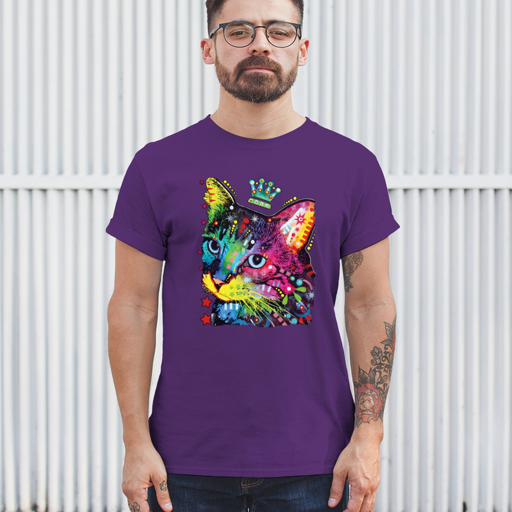 CUTE THINKING CROWNED CAT t-shirt dean russo colorful kitten men's tee purple
