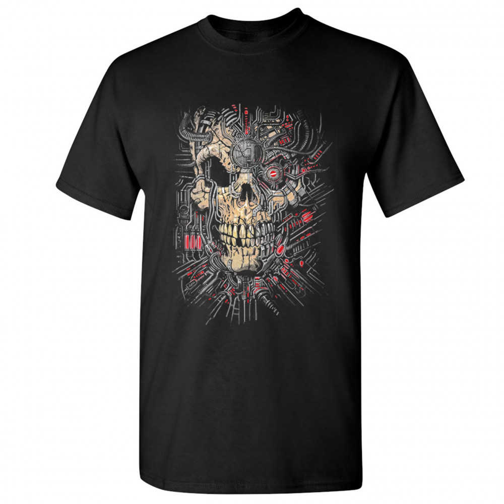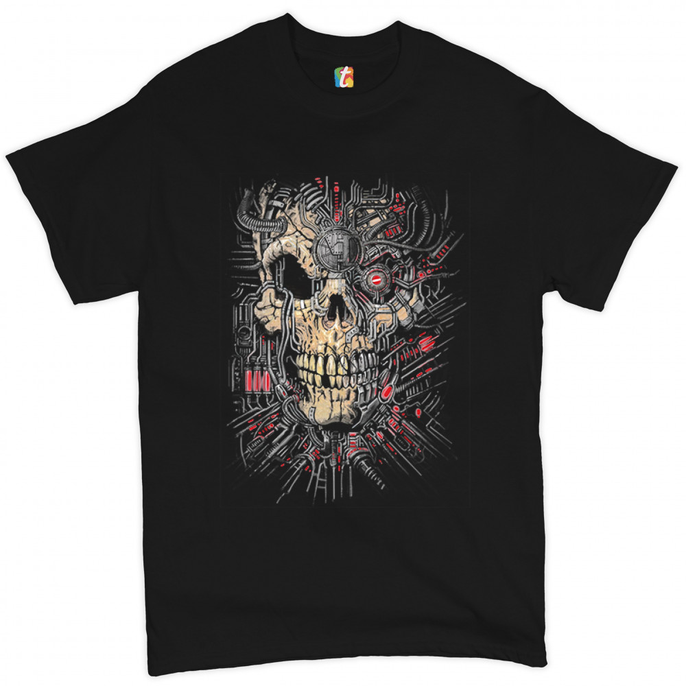 CYBORG SKULL FACE t-shirt scary cyberpunk robot horror men's tee black