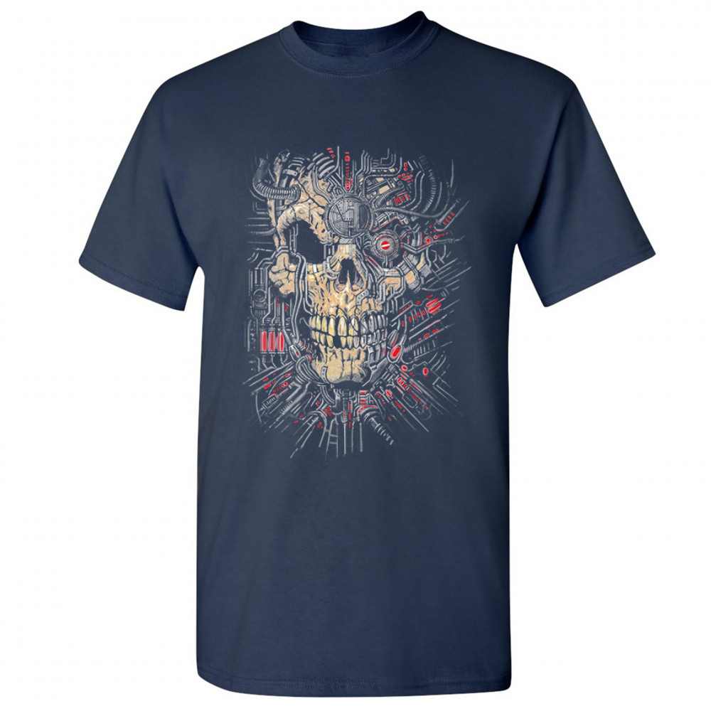 CYBORG SKULL FACE t-shirt scary cyberpunk robot horror men's tee navy blue