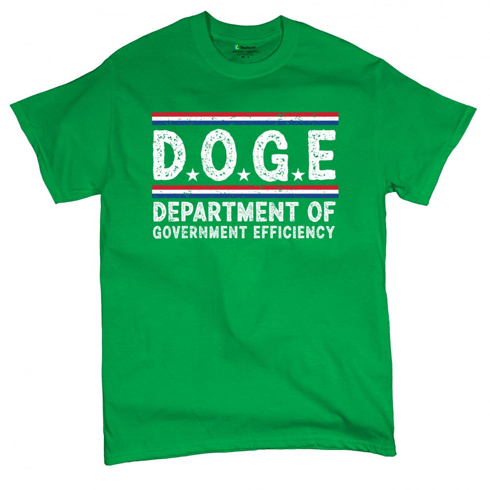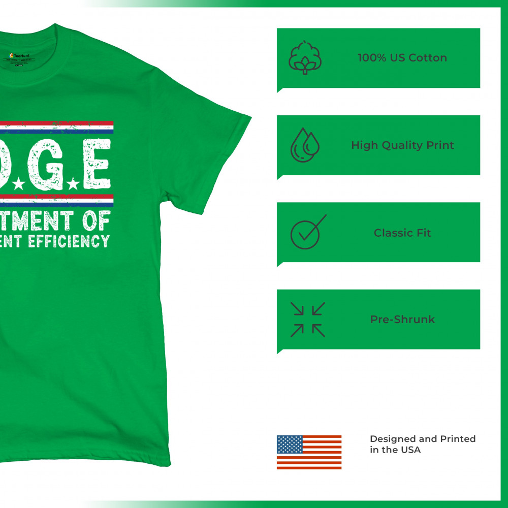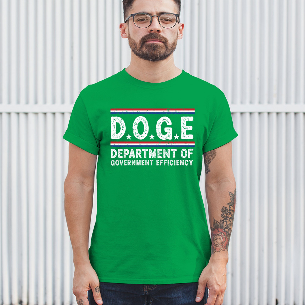 Bold D.O.G.E. parody design with stars, stripes, and vintage patriotic flair. Perfect for libertarians, protests, or political statement wear.