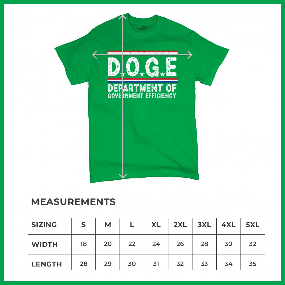 The D.O.G.E. – Department of Government Efficiency design features distressed bold text, stars, and stripes in patriotic red, white, and blue. Combining political parody with classic Americana flair, it’s perfect for conservatives, libertarians, and anyone critical of big government. Great for protests, events, or just everyday bold statements.