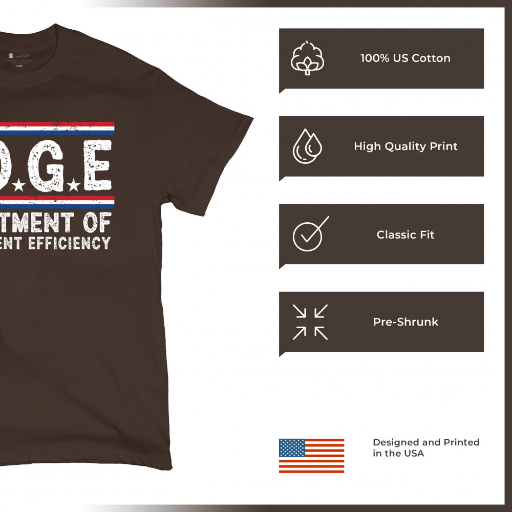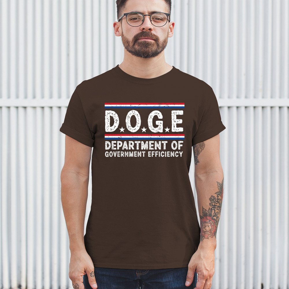 Bold D.O.G.E. parody design with stars, stripes, and vintage patriotic flair. Perfect for libertarians, protests, or political statement wear.