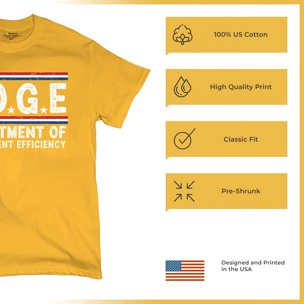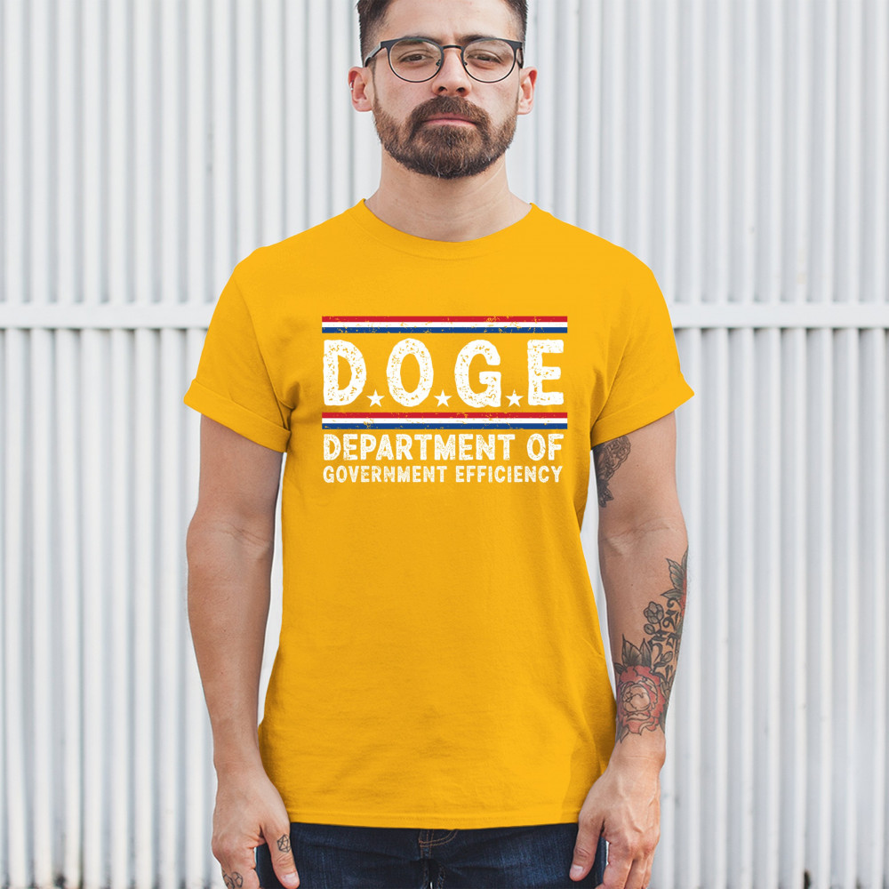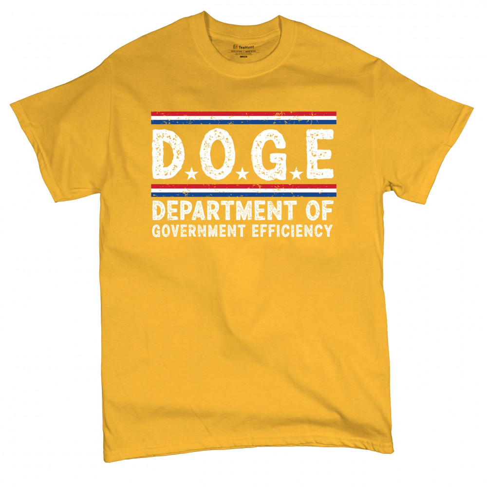 Bold D.O.G.E. parody design with stars, stripes, and vintage patriotic flair. Perfect for libertarians, protests, or political statement wear.