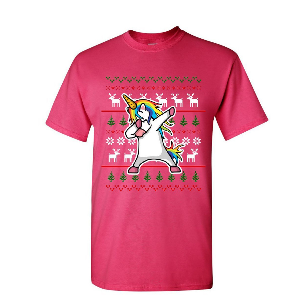 DABBING UNICORN ugly sweater t-shirt christmas xmas dab rudolph mens tee shirt hot pink