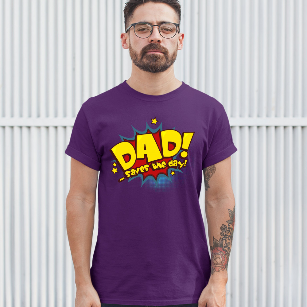 DAD SAVES THE DAY! t-shirt father's day world's greatest dad men's tee purple