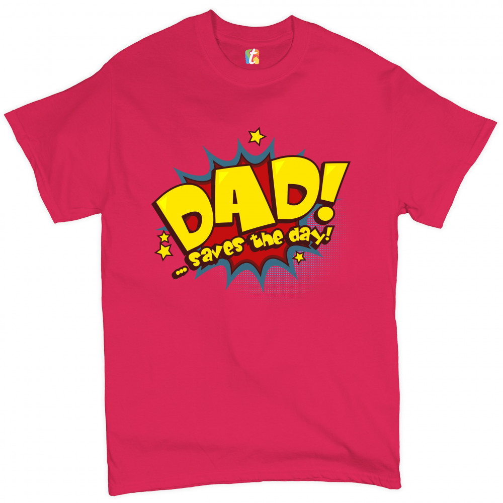 DAD SAVES THE DAY! t-shirt father's day world's greatest dad men's tee hot pink