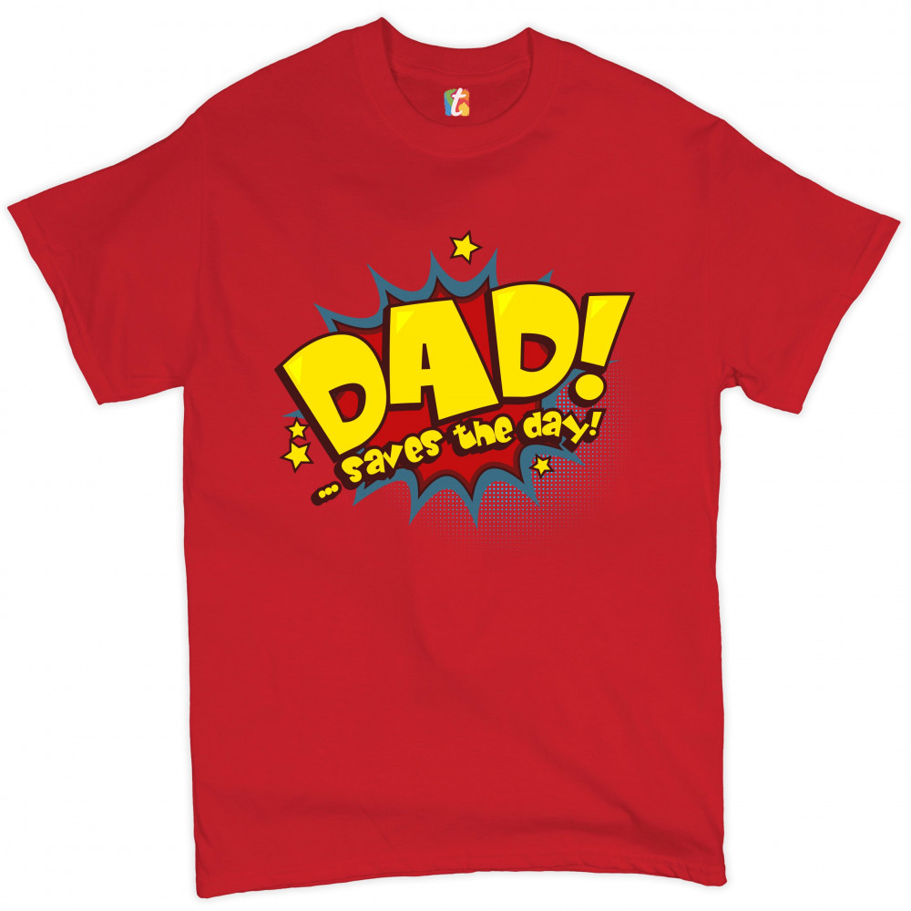 DAD SAVES THE DAY! t-shirt father's day world's greatest dad men's tee red