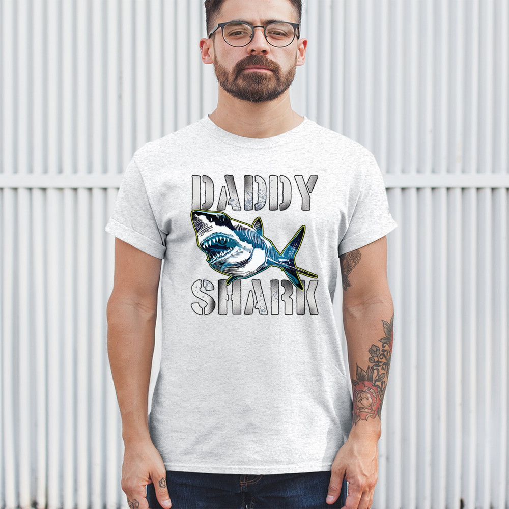DADDY SHARK FUNNY FATHER'S DAY t-shirt funny dad joke grandpa papa men's tee ash gray