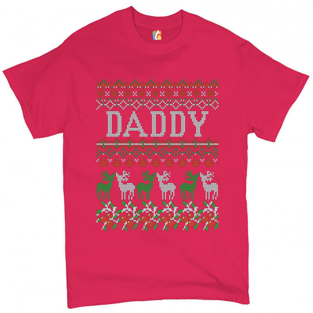 DADDY t-shirt merry christmas ugly sweatshirt reindeer rudolph men's tee hot pink