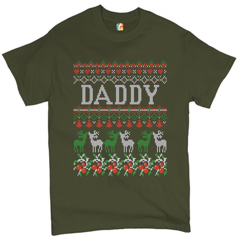 DADDY t-shirt merry christmas ugly sweatshirt reindeer rudolph men's tee military green