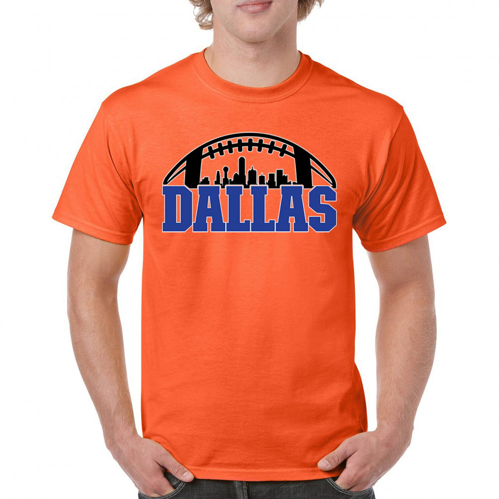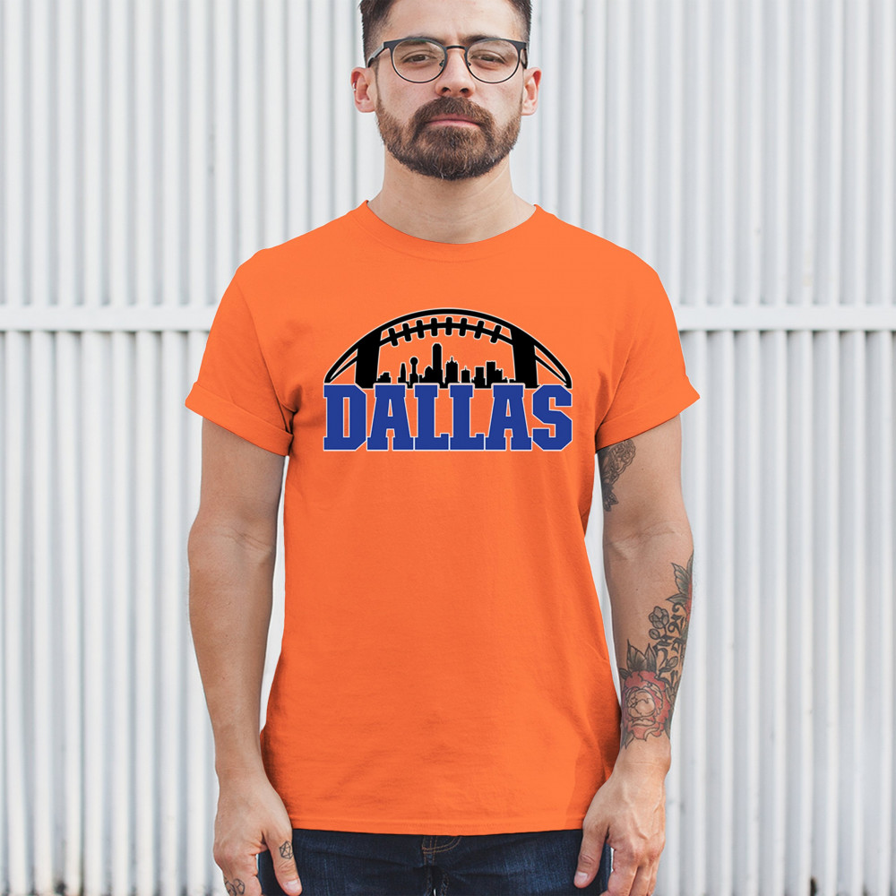 Show off your Dallas pride with a bold football-themed design featuring the city's skyline. Perfect for game days, tailgates, and passionate fans.