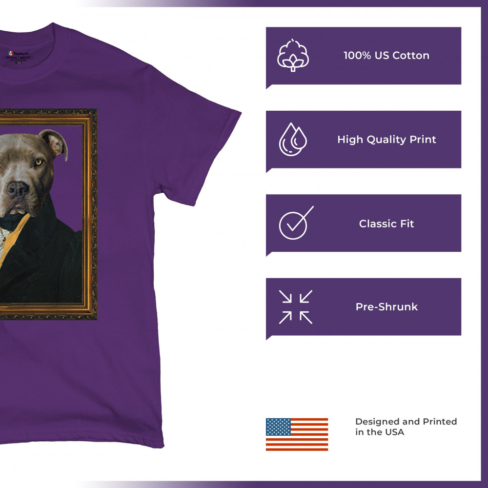 Add a touch of humor and class to your decor with our pit bull portrait in 18th-century attire. This delightful design merges the playful charm of pit bulls with the sophisticated style of historical portraits. Perfect for pet lovers and history buffs alike, it brings a unique and artistic flair to any space. Available in various sizes and printed on high-quality material, this portrait promises lasting appeal and enjoyment. It also makes a thoughtful gift for friends and family who appreciate quirky and artistic home decor.
