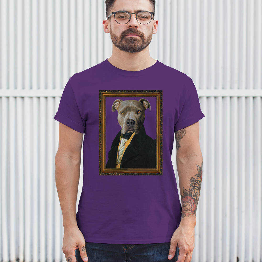 Unique pit bull portrait in 18th-century attire, blending humor and elegance for pet lovers and history enthusiasts. Perfect for home or office decor.