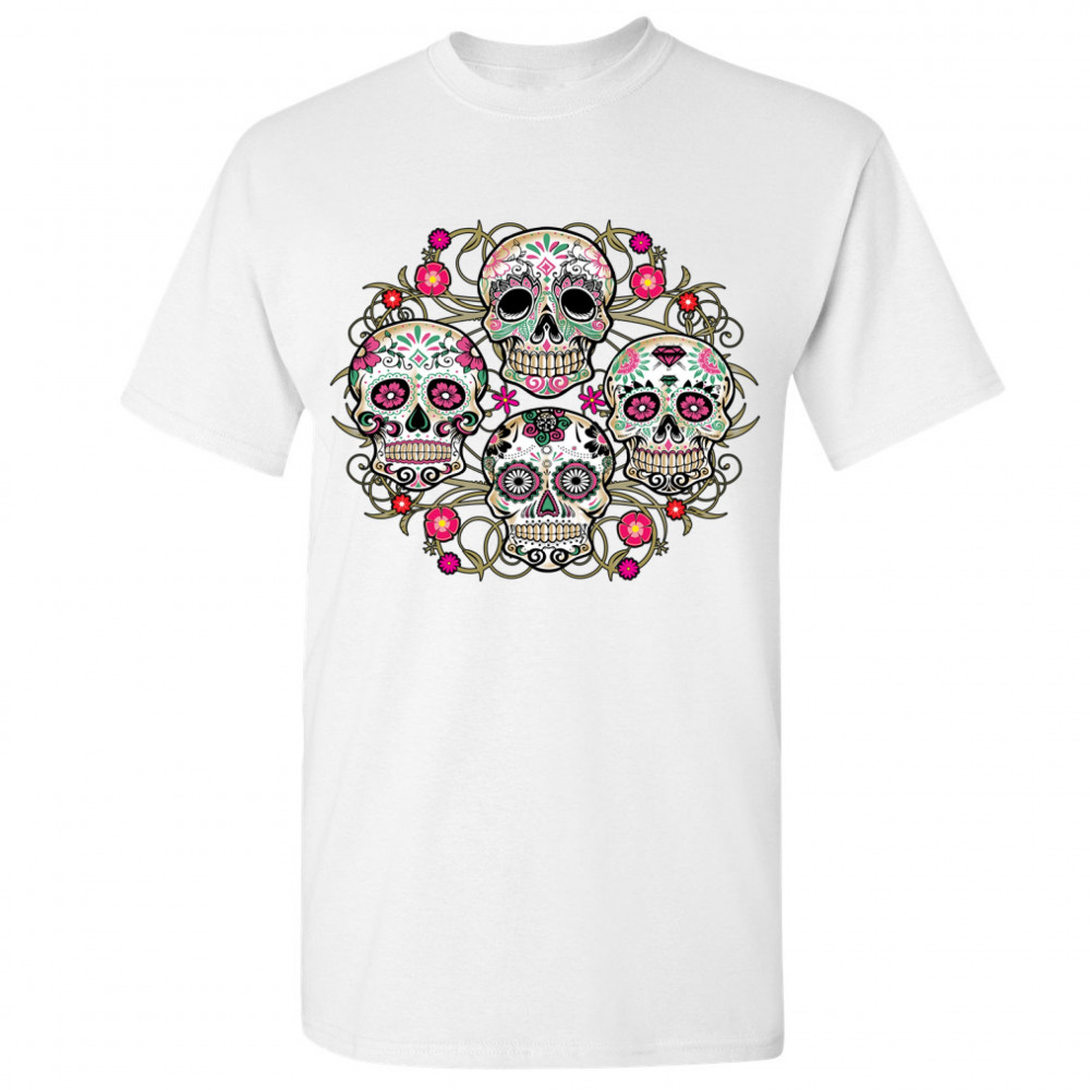 DAY OF THE DEAD FLORAL SUGAR SKULLS t-shirt dia de los muertos men's tee white